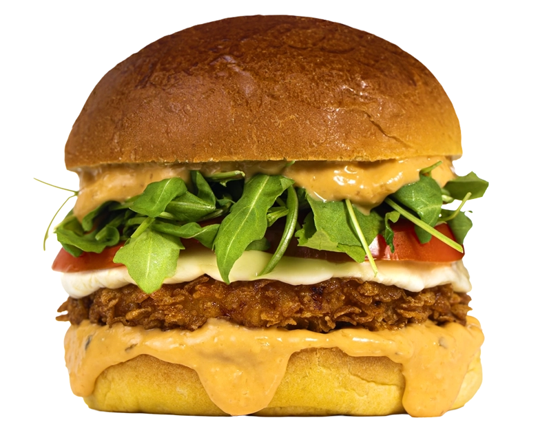 La Gallina canta diferente. Pollo crispy dorado y crujiente, tomate fresco, queso San Simón con su ahumado inconfundible, rúcula vibrante y la salsa XL de la casa y todo esto dentro de nuestro espectacular pan de patata. Ligera en apariencia, profunda en sabor. Todas nuestras hamburguesas se sirven acompañadas de patatas, doradas y generosas, el contrapunto perfecto para cerrar cada historia como merece.