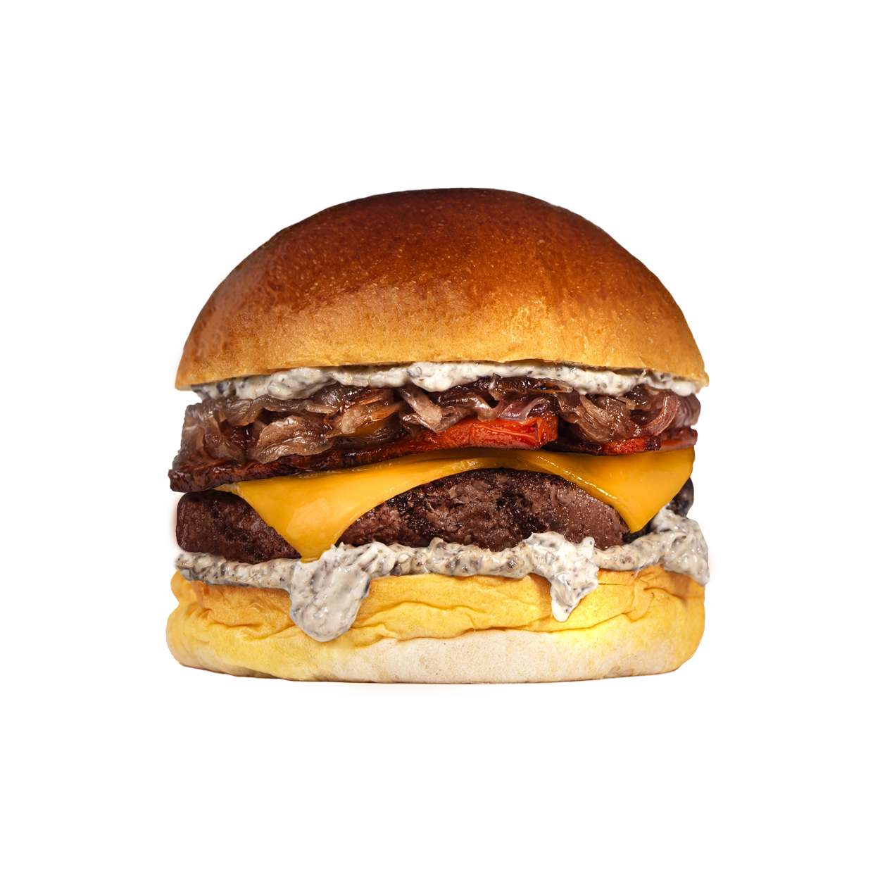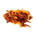La Ruda es carácter en estado puro: nuestro increíble pan de patata suave como un susurro que abraza 200 gramos de carne de vaca madurada procedente de los verdes pastos de Lugo, jugosa y profunda. El bacon cruje, la cebolla caramelizada aporta dulzura lenta, el cheddar se funde sin prisa y la mayonesa especial RUDO deja un final elegante, casi adictivo. Todas nuestras hamburguesas se sirven acompañadas de patatas, doradas y generosas, el contrapunto perfecto para cerrar cada historia como merece.